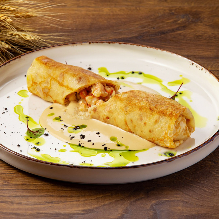 Блин с персиками и сливочным сыром