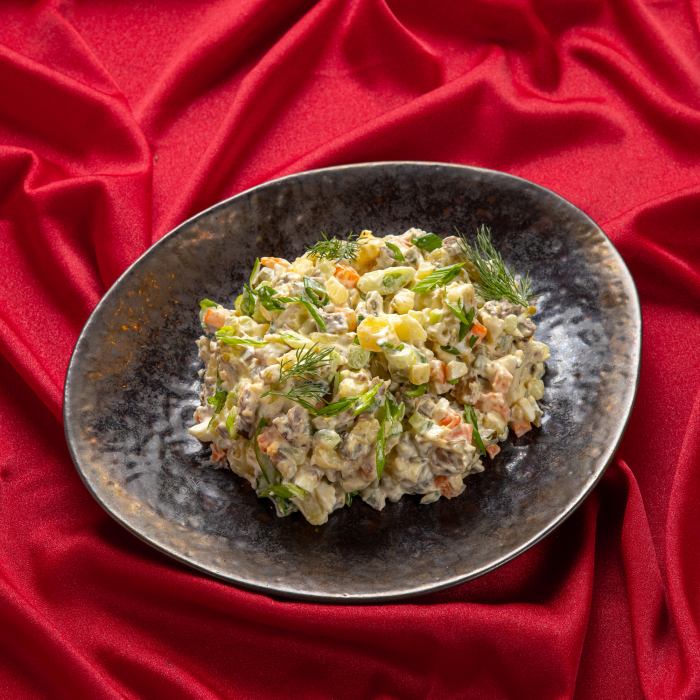 Сытный Оливье с говядиной 500гр